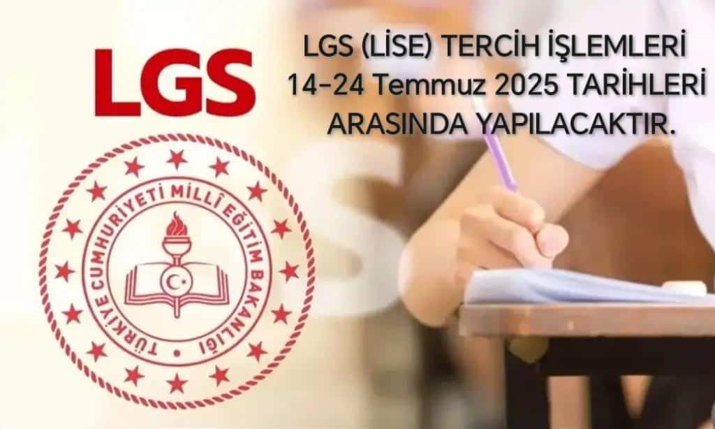 LGS (LİSE) Tercih işlemleri, 14-24 Temmuz 2025 tarihleri arasında yapılacak.Tercih işlemi öğrenci ve velisi tarafından https://e-okul.meb.gov.tr internet adresinden veya herhangi bir ortaokul/imam hatip ortaokulu müdürlüğünden yapılabilecektir. Yapılan tercihler mutlaka ilgili ortaokul müdürlüğüne onaylatılacaktır.